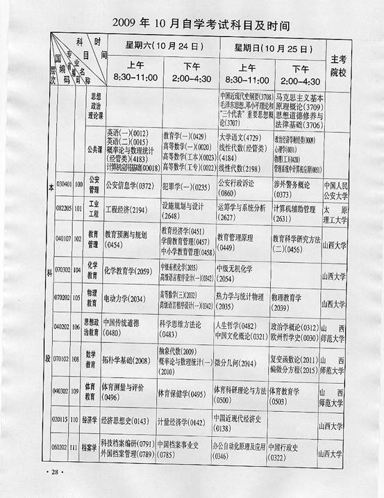 - 山西省2009年10月自學考試報考簡章2009-08-07