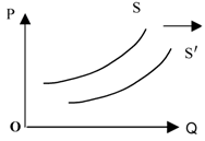 5.在下列圖形中供給曲線由S移動到S′,表明( )