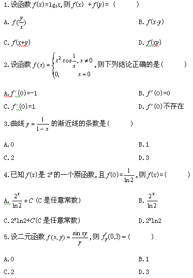 一、單項選擇題(本大題共5小題,每小題2分,共10分)