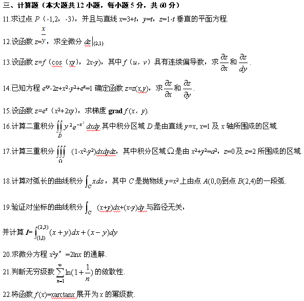 高等數學(工本)試題