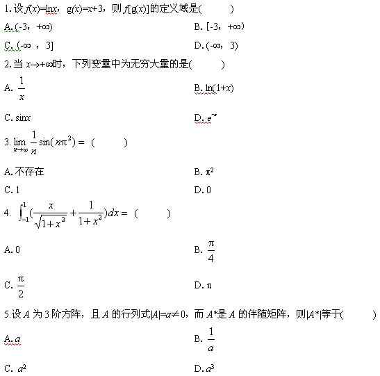 全國2011年4月自學(xué)考試高等數(shù)學(xué)(工專)試題