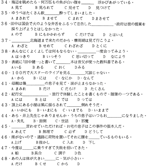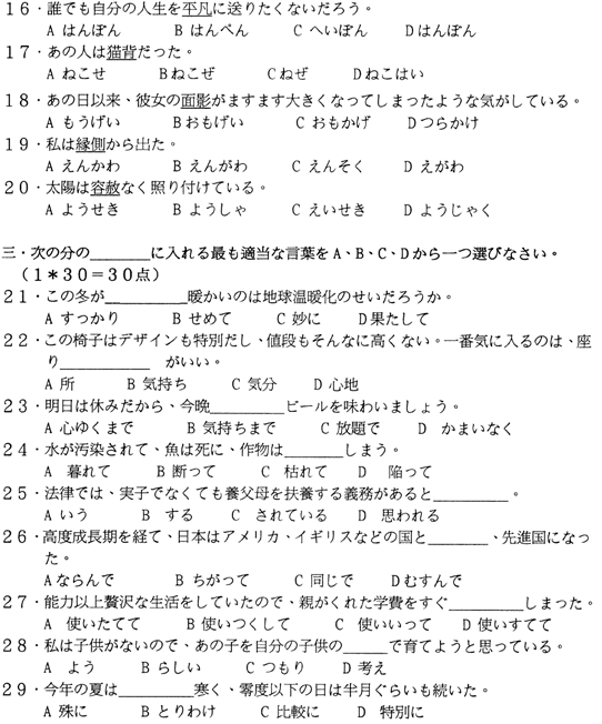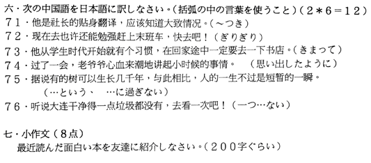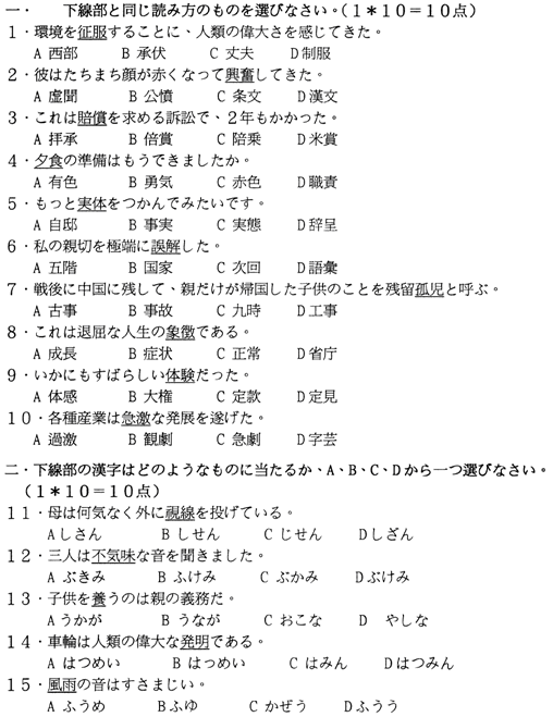 高級(jí)日語(yǔ)(一)試題?