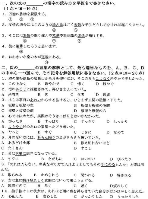 浙江省2011年4月自學(xué)考試日本文學(xué)選讀試題