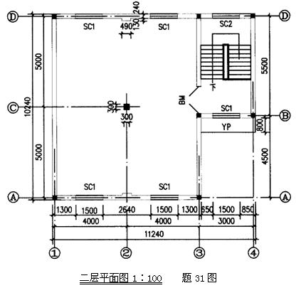 31.試計(jì)算下圖所示二層建筑物二層平面的建筑面積。YP為無柱雨篷。(計(jì)算結(jié)果保留兩位小數(shù))(5分)