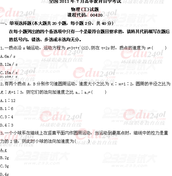 溫馨提示:由于很多試題(主要是主觀題),其答案并不是唯一的,甚至是開放的,一道題的解題思路是多種多樣的,從實施素質教育的要求出發,應該鼓勵自考生用多樣的思路解題。正是因為如此,在評卷過程中,往往會根據考生的作答情況,對評分標準進行調整,也正因如此,教育部把國家教育考試靠后的評分標準仍然列為秘密材料。因此教育部不在網上公布答案,請考生諒解。