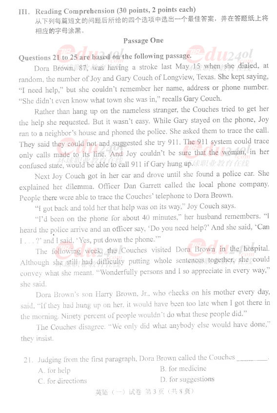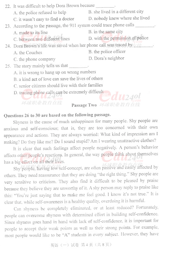 全國(guó)2011年4月自學(xué)考試英語(yǔ)(一)試題