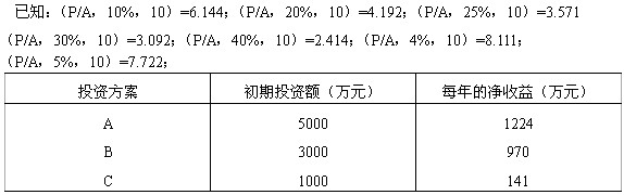 3.某建筑工程公司欲在自己的土地上開設商店,以補充任務不足時施工隊伍的開支。根據預測,商店的規(guī)模可以有三種,其初期投資額、每年折舊前的利潤(凈收益如下表)。如果商店的壽命期為10年(假定10年后繼續(xù)經營,則其裝修費用與新建時的費用大致相同),解答下列問題: