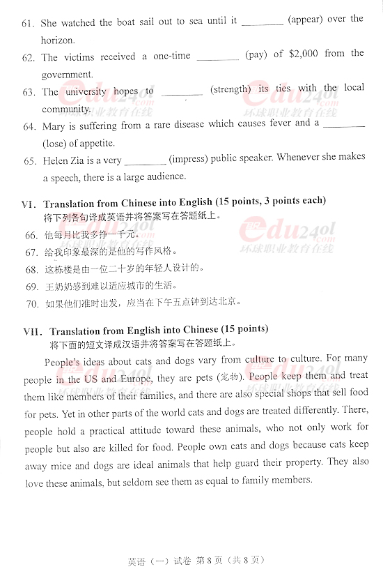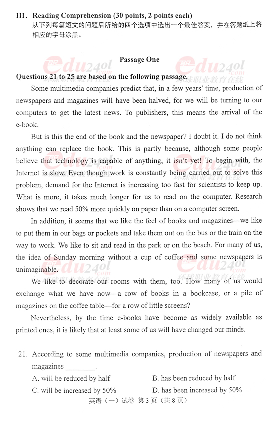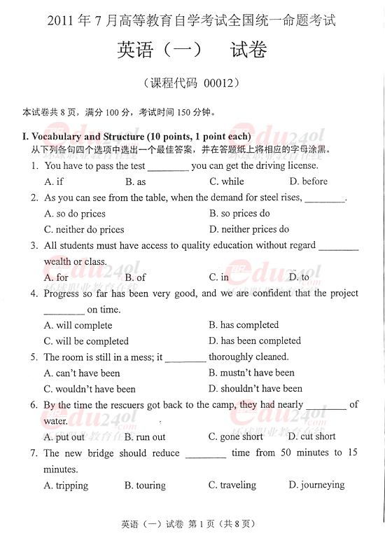 - 更新!2025年10月自考《英語二》答案匯總2025-10-28