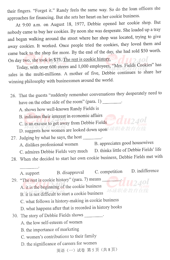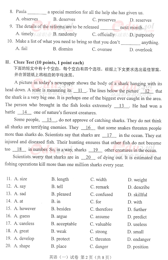 - 2025年10月自考《英語二》選擇、完形填空、寫作真題及答案更新!2025-10-28