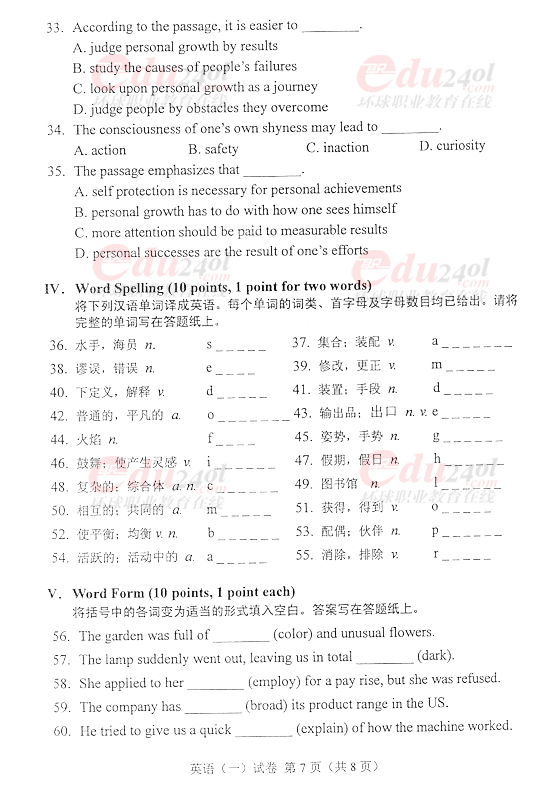 - 同步更新!2025年10月自考《英語二》真題及答案匯總(完整版)2025-10-29