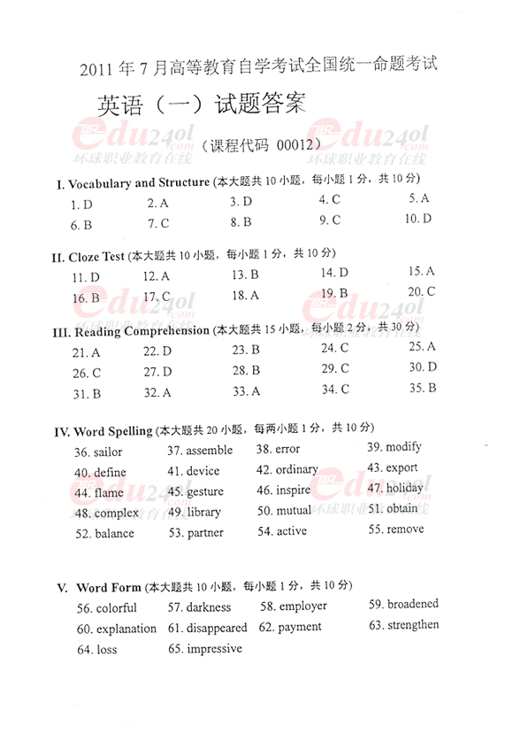 - 更新!2025年10月自考《英語二》答案匯總2025-10-28
