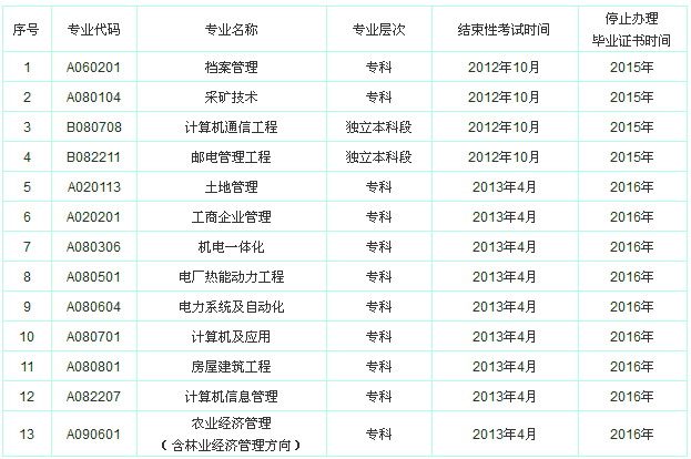 ?紝I(yè)在規(guī)定的結(jié)束性考試之后,取得了專業(yè)課程考試合格成績的考生,若沒有取得公共政治課程和公共基礎(chǔ)課程合格成績的,可在其它專業(yè)中參加公共政治課程和公共基礎(chǔ)課程的考試,所有課程考試合格后仍可辦理原專業(yè)畢業(yè)證書(有特殊說明的除外)。停止辦理畢業(yè)證書后,仍未完成全部專業(yè)課程考試的考生,可轉(zhuǎn)入其它專業(yè)學(xué)習(xí)。