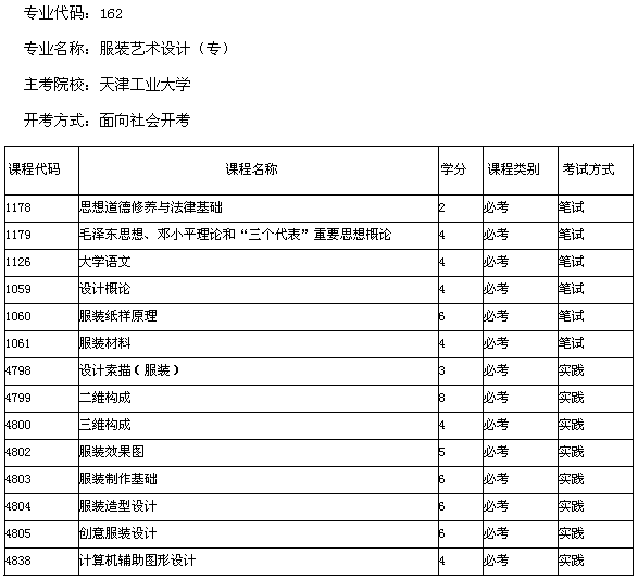 天津工業大學2013年服裝藝術設計(專科)考試計劃