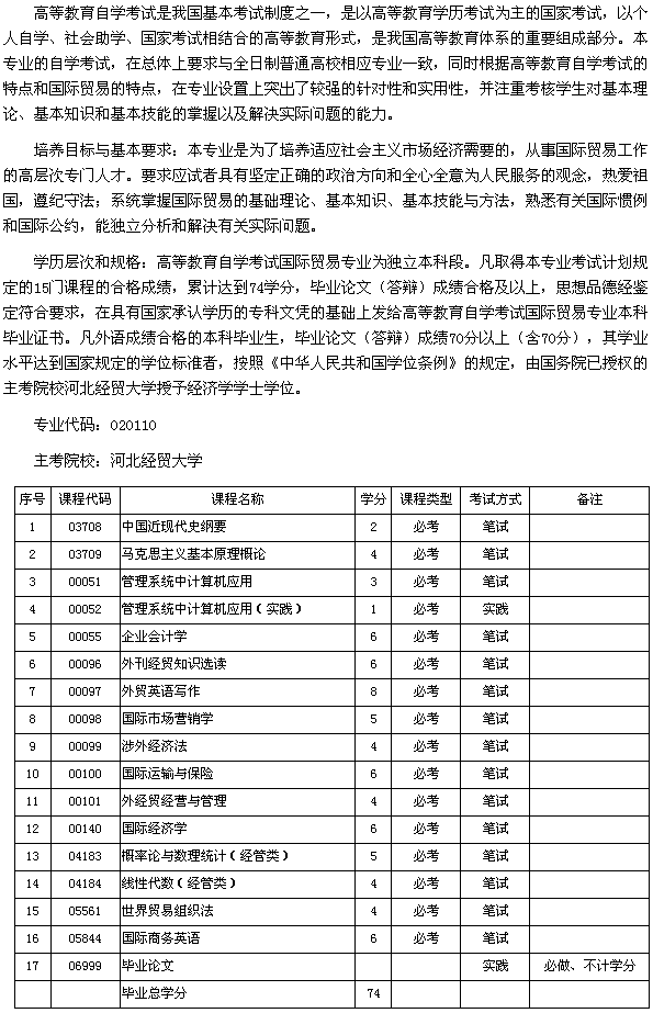 河北省2013年河北經貿大學國際貿易(本科)考試計劃
