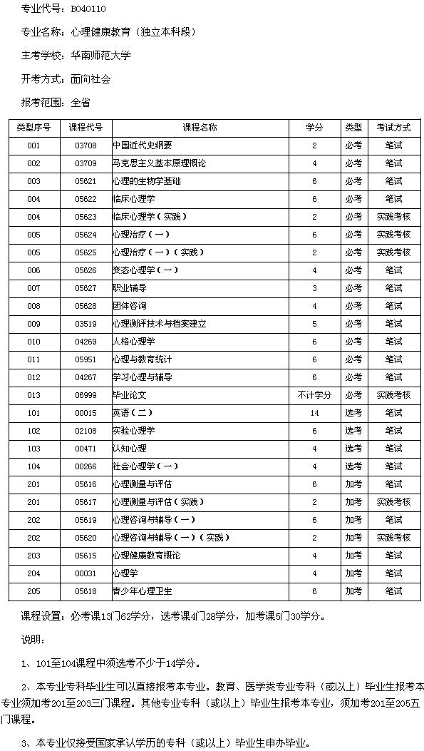 廣東2013年華南師范大學心理健康教育(本科)考試計劃