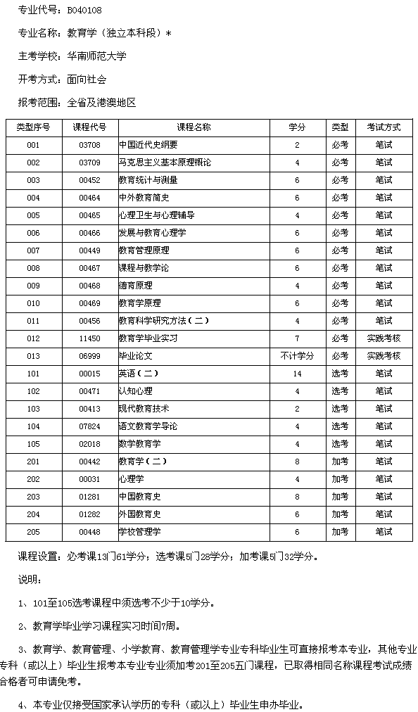 廣東2013年華南師范大學教育學(本科)考試計劃