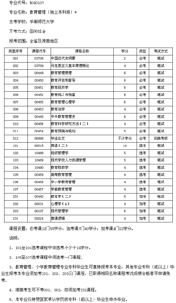 廣東2013年華南師范大學教育管理(本科)考試計劃