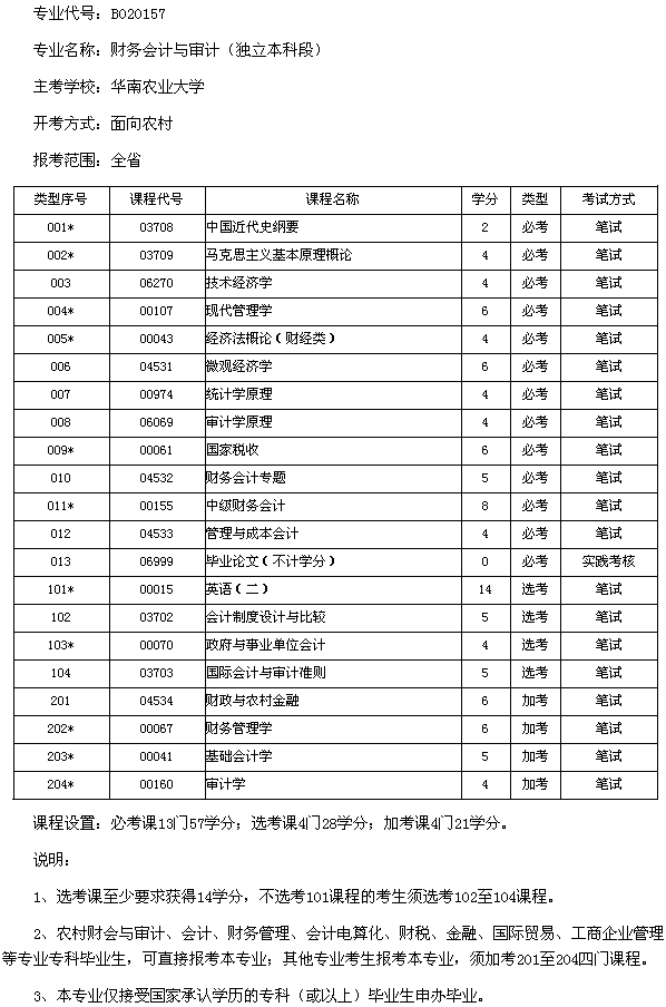 摘要 廣東2013年華南農業大學財務會計與審計(本科)考試計劃