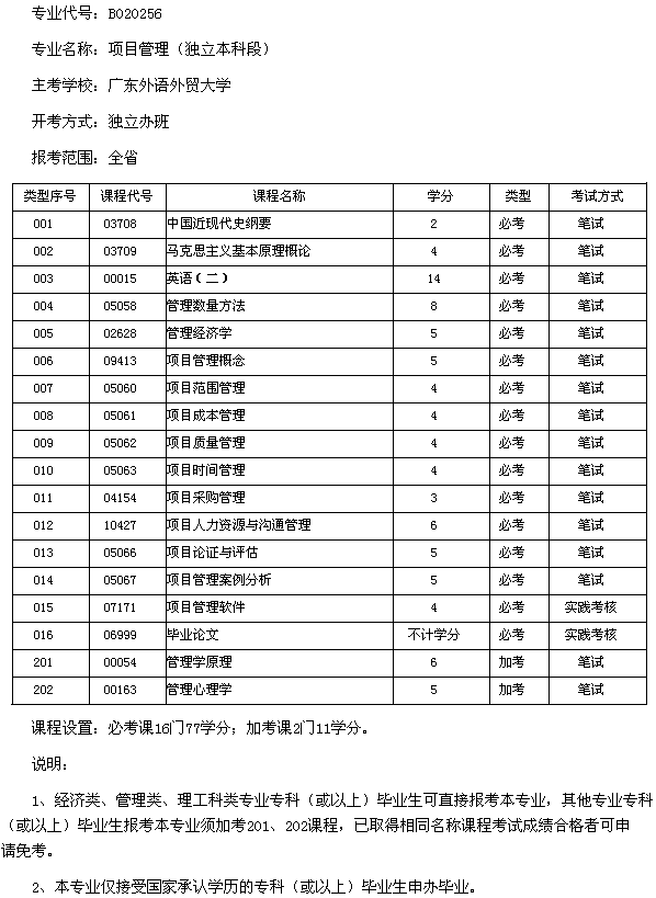 廣東2013年廣東外語外貿大學項目管理(本科)考試計劃