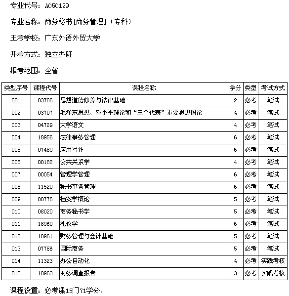 廣東省2013年廣東外語外貿(mào)大學(xué)自考商務(wù)秘書(專科)考試計(jì)劃