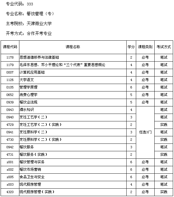 天津市2013年天津商業(yè)大學(xué)自考餐飲管理(專科)考試計劃