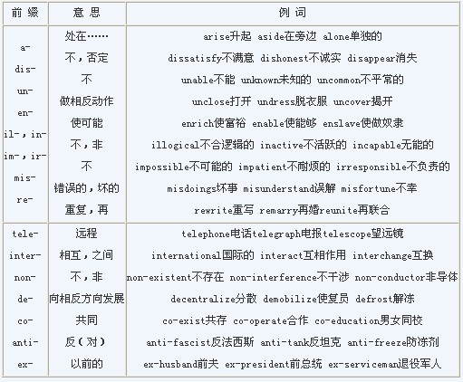 (1)派生:通過在詞根上加前綴或后綴構成另一個詞。