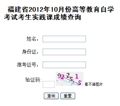 點擊進入>>福建省2012年10月自考實踐課成績查詢入口