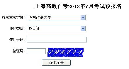 點擊進入>>華東政法大學2013年7月自考新生預報名入口