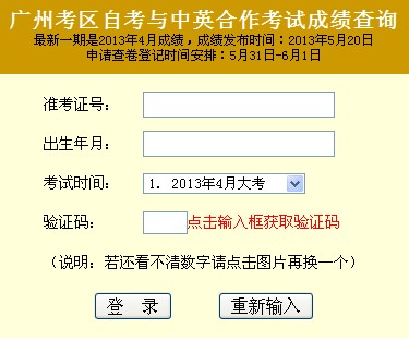 點擊進入>>廣州市2013年4月自考成績查詢入口