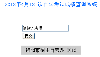 綿陽市2013年4月自考成績查詢入口
