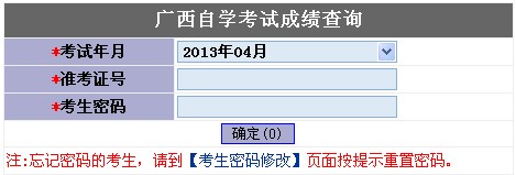 點擊進入>>廣西省2013年4月自考成績查詢入口