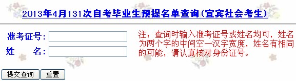 宜賓市2013年4月自考畢業生預提名單查詢入口