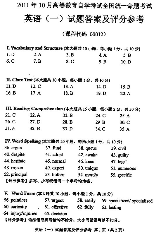 - 更新!2025年10月自考《英語二》答案匯總2025-10-28