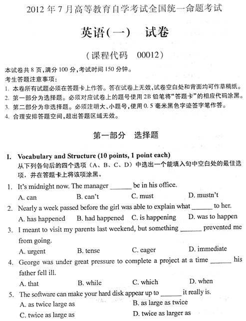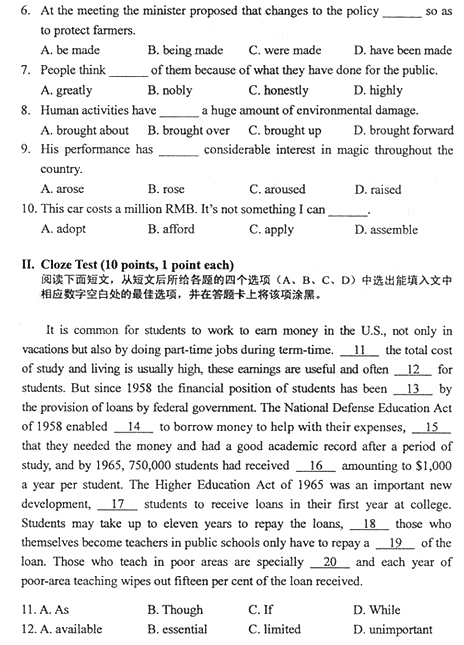 - 2025年10月自考《英語二》選擇、完形填空、寫作真題及答案更新!2025-10-28