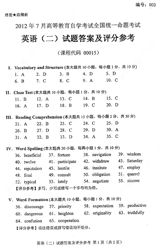 - 更新!2025年10月自考《英語二》答案匯總2025-10-28