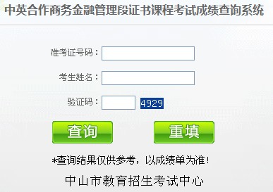 廣東中山市2013年5月自考中英合作商務金融管理段證書課程成績查詢入口