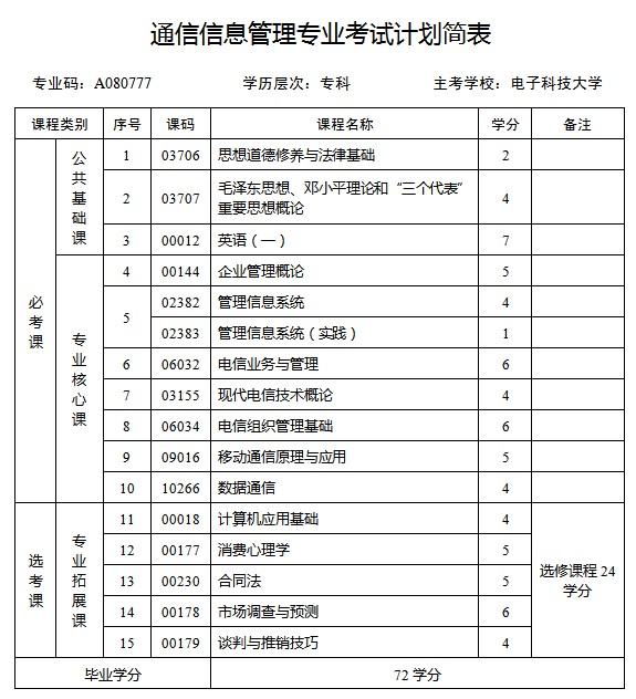 當前位置: 首頁 > 自學考試 > 自學考試備考資料 > 四川省2013年自考通信信息管理專業(專科)考試計劃