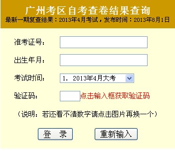 廣東廣州市2013年4月自考成績查卷結(jié)果查詢?nèi)肟?/h1>