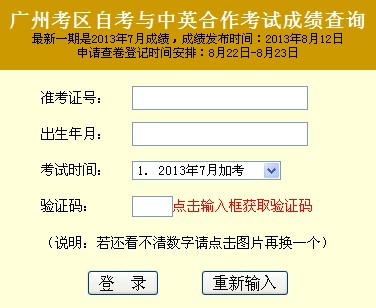 點擊進入>>廣州市2013年7月自考成績查詢入口