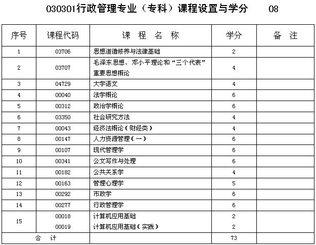重慶市2013年自考行政管理專業(yè)(專科)課程設(shè)置與學(xué)分