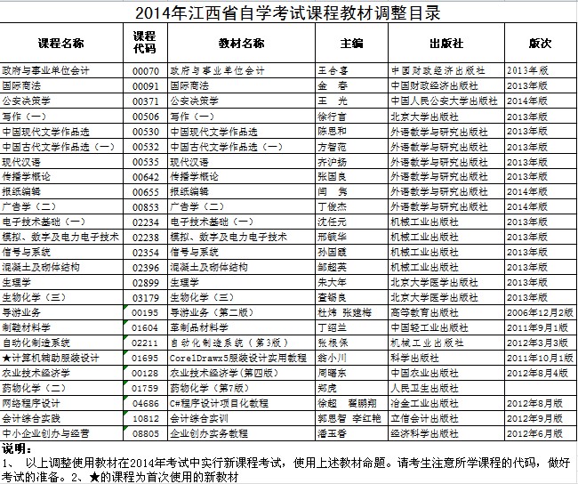 江西省2014年自考開考課程教材調(diào)整目錄