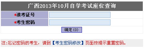 點擊進入>>廣西省2013年10月自考座位號查詢入口