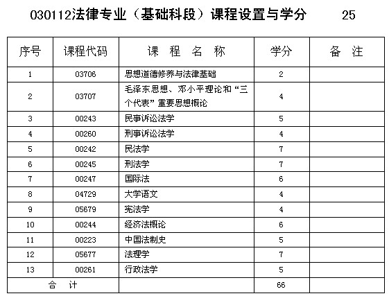 重慶市自考法律專業(基礎科段)課程設置與學分