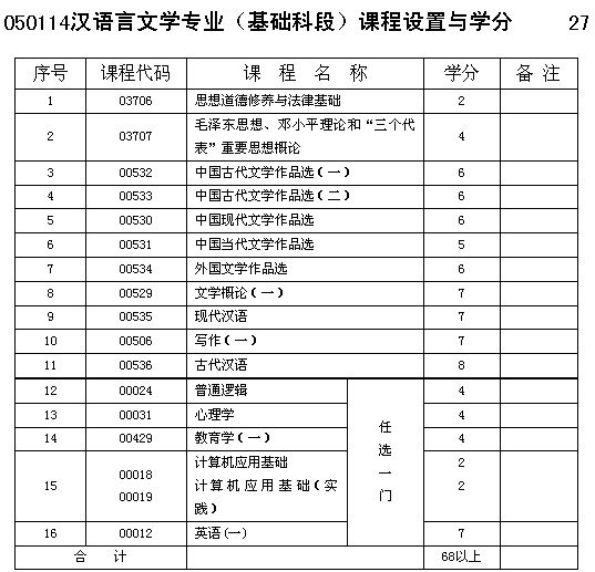 重慶市自考漢語言文學(xué)專業(yè)(基礎(chǔ)科段)課程設(shè)置與學(xué)分
