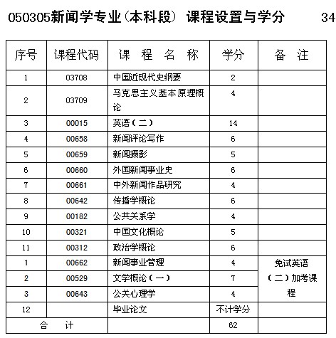 重慶市自考新聞專業(yè)(本科)課程設(shè)置與學(xué)分