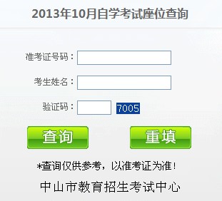 點擊進入>>中山市2013年10月自考座位查詢入口