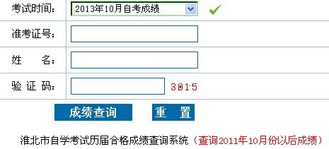 安徽淮北市2013年10月自考成績查詢入口