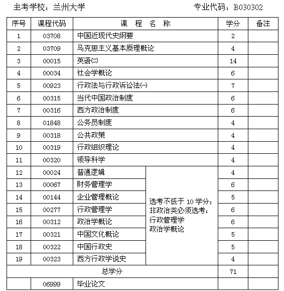 摘要 甘肅省自考行政管理學專業(本科)課程設置與學分