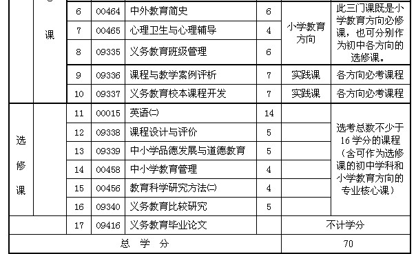 摘要 甘肅省自考義務教育專業(本科)課程設置與學分