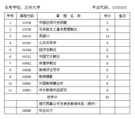 摘要 甘肅省自考新聞學(xué)專業(yè)(本科)課程設(shè)置與學(xué)分